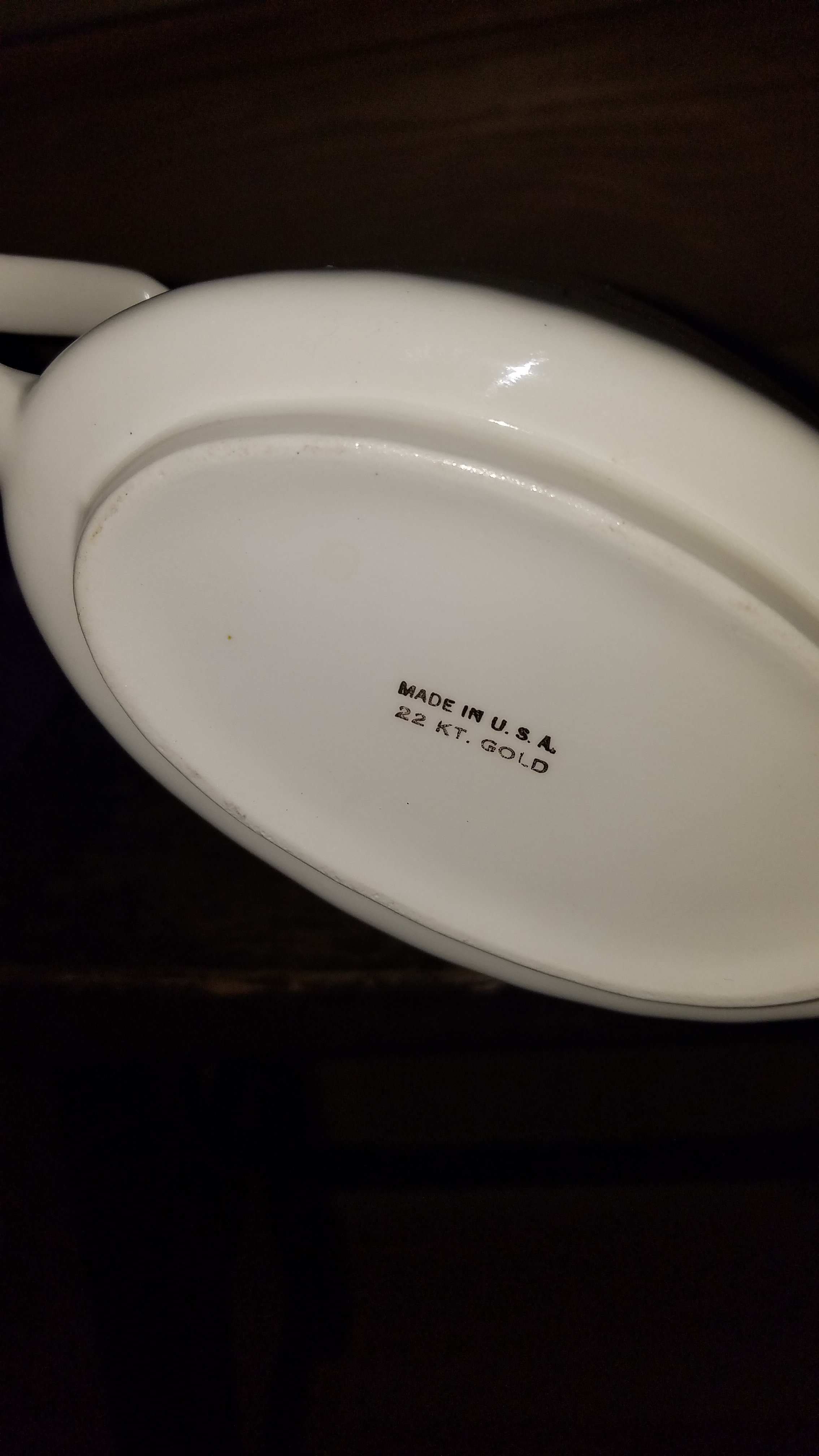 Dish marked Made In USA, 22 kt gold