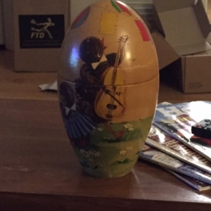 Thank you for all the input! It's definitely wood. There are no other pieces on the inside. The "Egg" is at my girlfriend's place, I'll post...