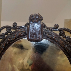 Top of mirror where it appears to have had a coat of arms...