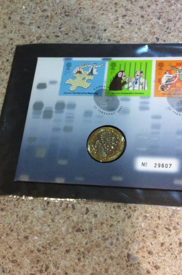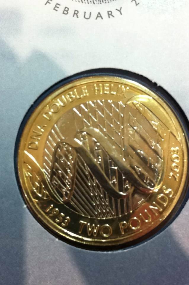 UK BRITISH COIN 2003 £2 TWO POUND DNA DISCOVERY ANN. DOUBLE HELIX. UNC + ENVELOP.
