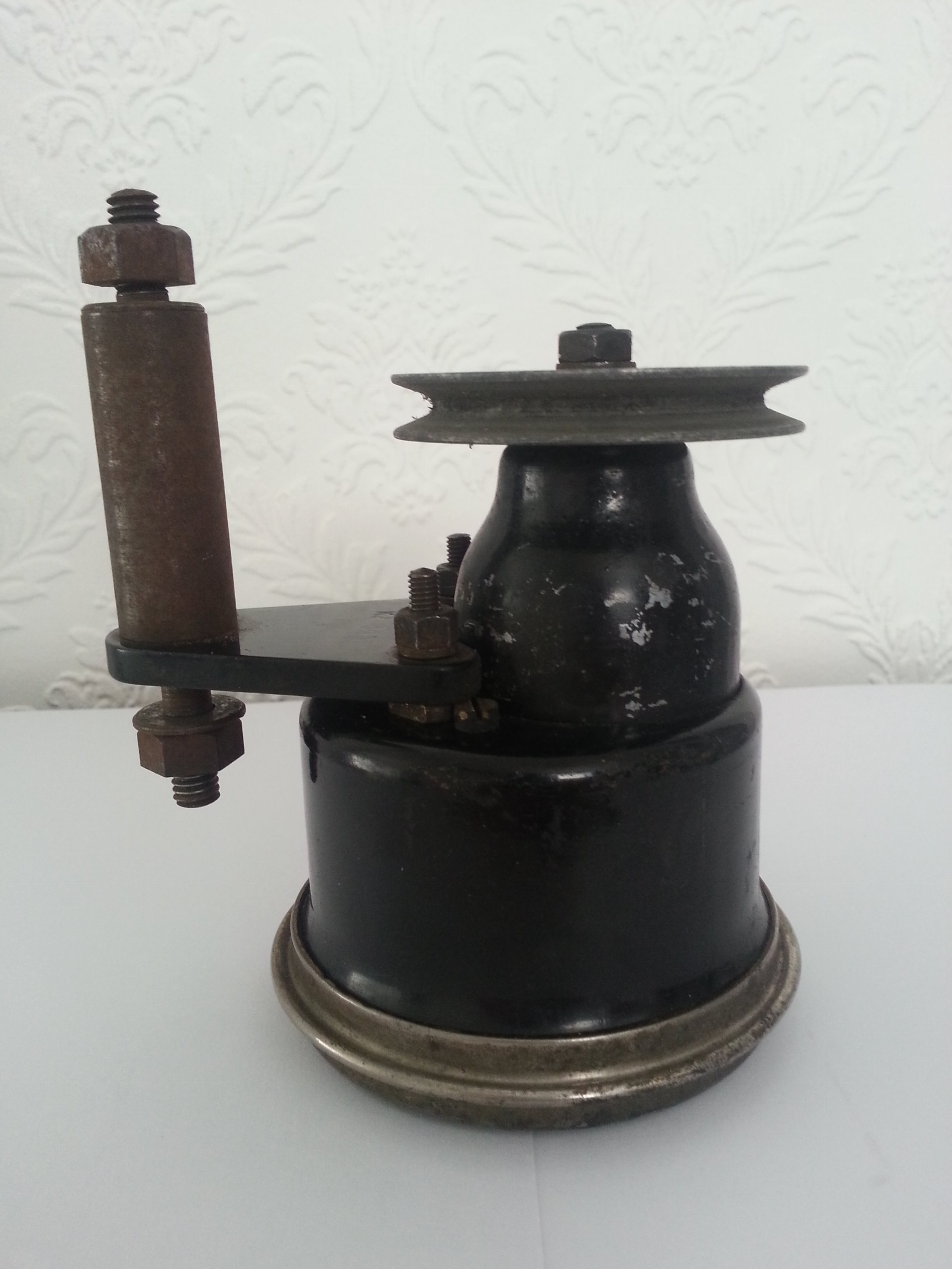 Does the pully on the back drive it? If so, I must dismiss my first idea of a barometric rate of climb/descent indicator. If it is connected with the film industry, could it be that some film stock is rated higher than other film stock for rewind speed, and this gadget would be connected to the rewinding machine to ensure that the film was not snapped in rewinding by doing it too fast.