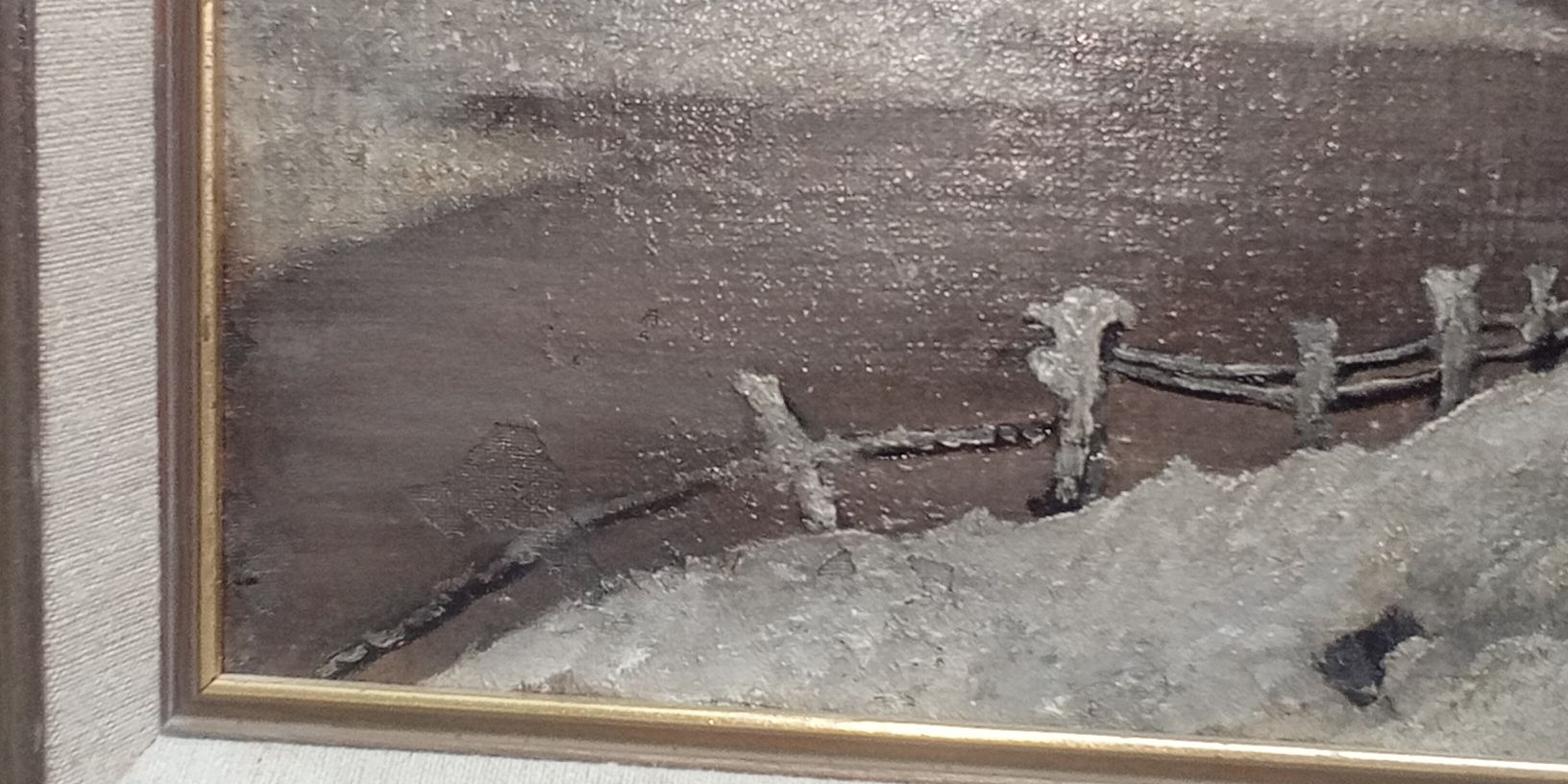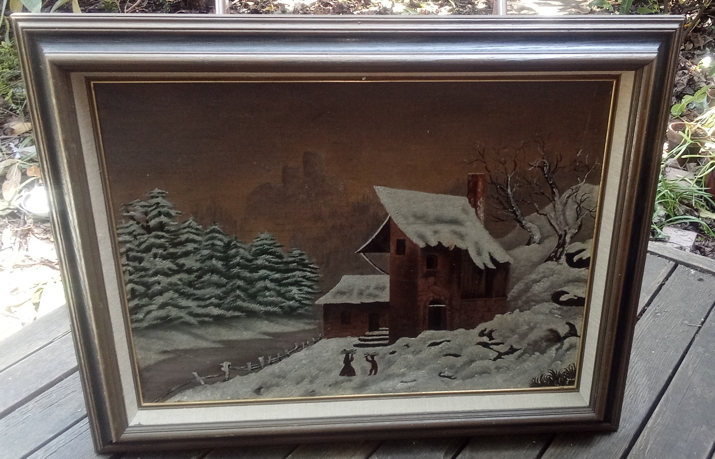 American primitive style snow scene painting