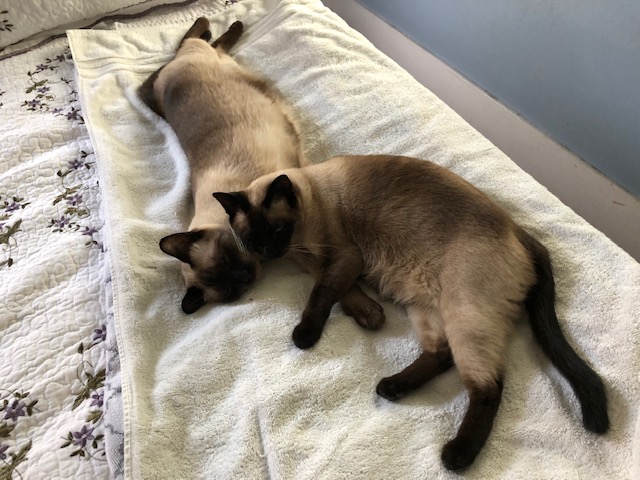 That’s Bunsie at the top of the photo and Cookie at the bottom. Cookie has a beautiful face but she’s quite chubby. I always tell her that she could be a plus size kitty model!