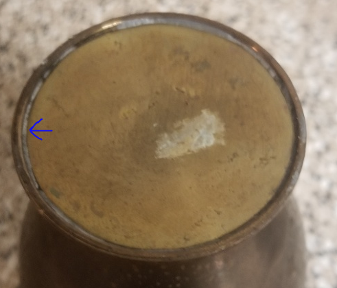 Hi everyone, I purchased this vase about 6 months ago, its been on my bookshelf since I purchased it. It has a beautiful goldish patina to it. That's why I purchased it. It a small vase it's about 6 to 7 inches and weighs 1lb 4oz. Initially I thought it was probably Chinese or some type of asian vase but I'm really uncertain since I cant find any other examples to compare it too. Let me know what yall think