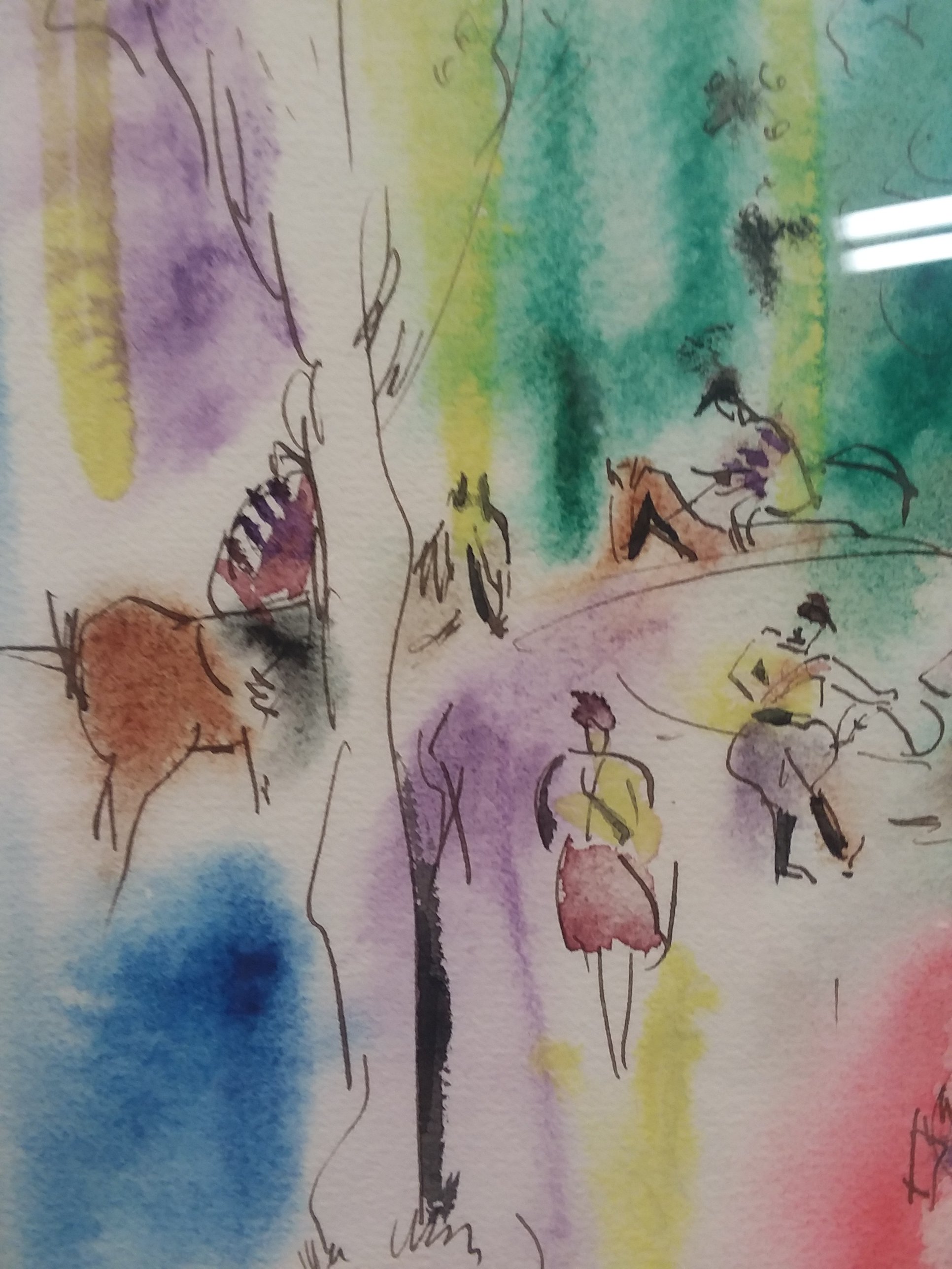 So I work at a thrift store, which is about to open an eBay store. ( Proceeds are used for drug and alcohol rehab, as well as a shelter. ) One of the people I work with found this piece, and is convinced it's Dufy. The signature is totally wrong, of course. I think it's still worth something (It's really nice in person, love the colors...) But of course, no idea who the artist is. I may try to take it out of the frame later to see if there is any further info. Thanks for the help... I may have more questions later.