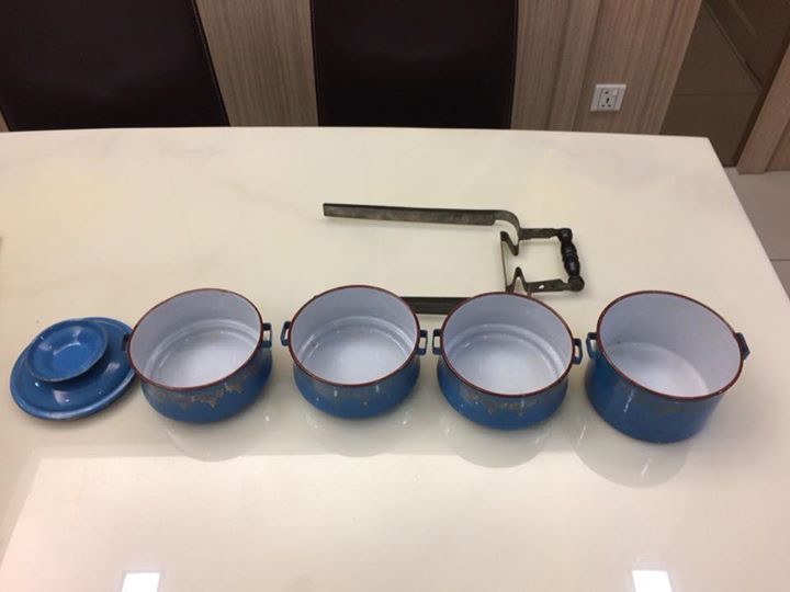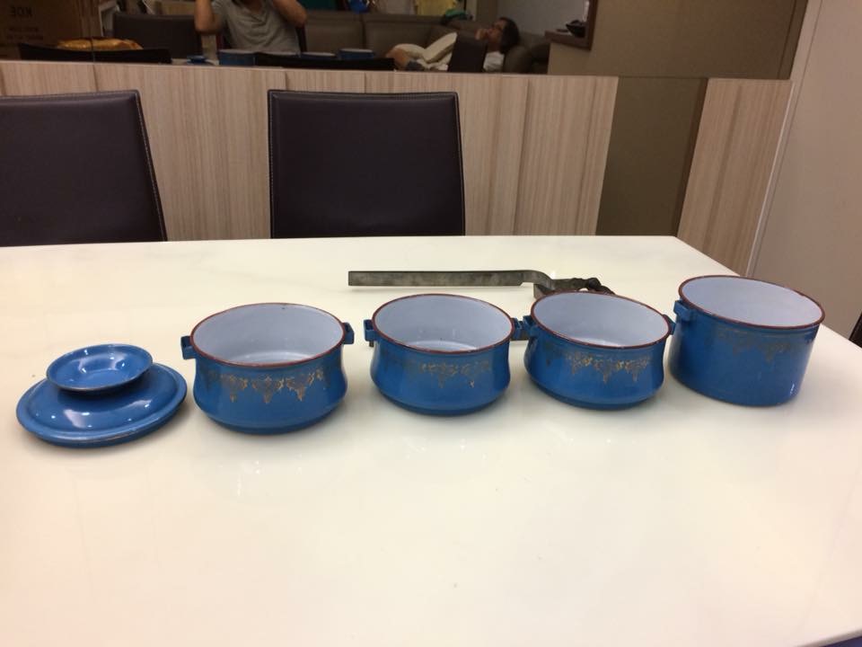 Featured Blue Enamel Tiffin Carrier. Ca. 1900