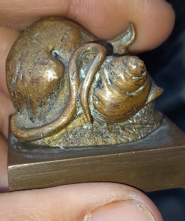 Bronze mouse and snail paperweight