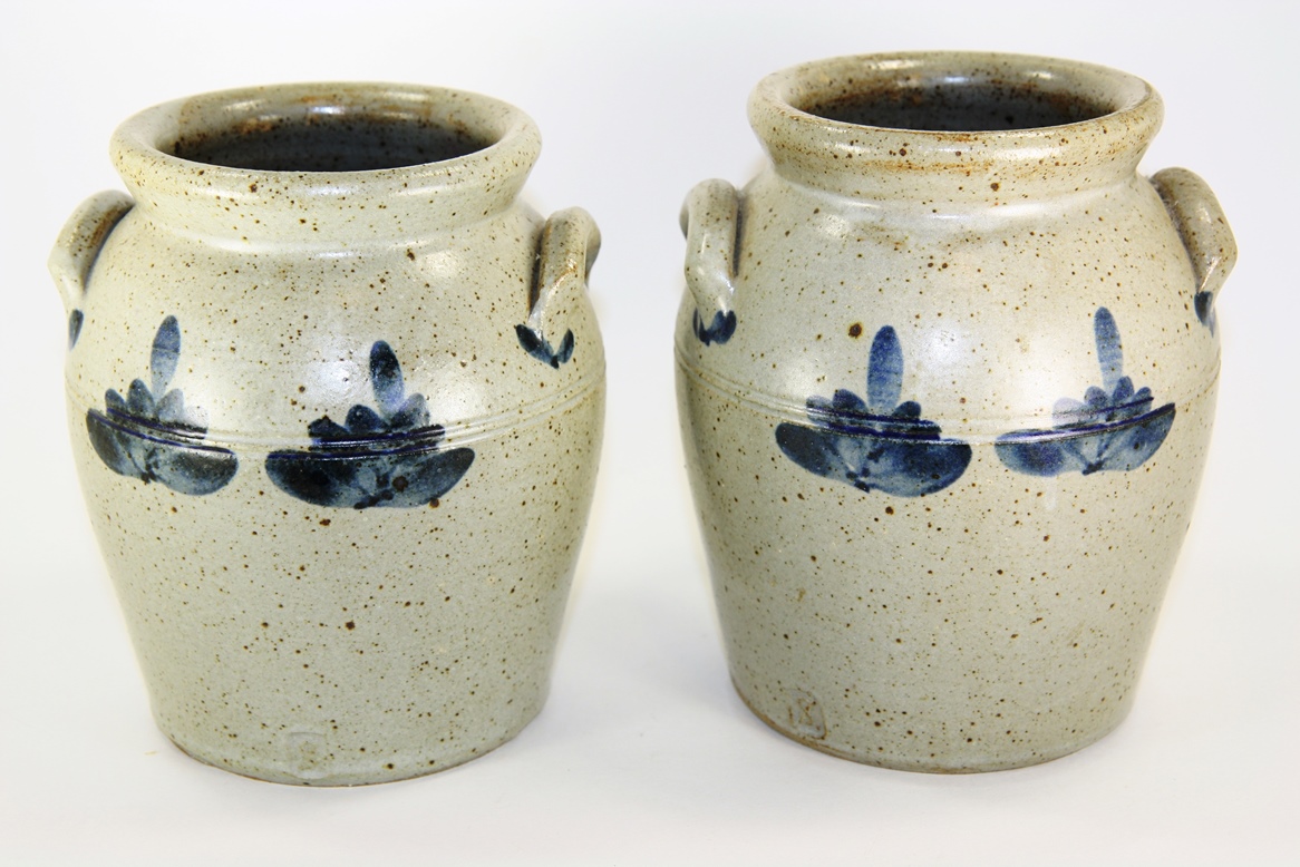 C SMITH STONEWARE CROCKS WITH COBALT FLORAL DESIGN - FOR REAL?
