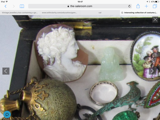 Deliberating it with myself, the conclusion is, probably not. But depends on how big a deal it is to go there, what you would have to give up doing instead, how much they expect to get, whether there is anything else among that stuff that appeals to you (I'd want to know more about the box itself). The other cameo is uninteresting. This one is quite good. Too bad someone probably damaged it by removing it from a gold mount. Unless it is signed, & by a recognized name, it is probably not worth the investment of time & attention all by itself. And you can't know without taking a direct look at the back. I only very, very rarely buy a cameo that is part of a lot of otherwise unwanted stuff. I have to really want it, & it has to be really cheap.