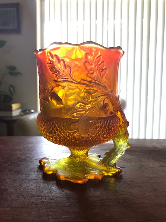 Featured Carnival Glass Leaf Footed Mug