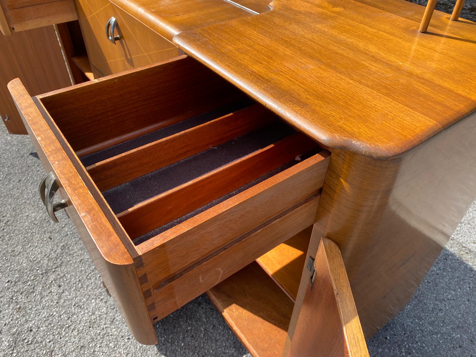 I’d be really grateful if anyone could give me an approximate age. I assume it’s more modern than it appears. The top is plywood. The drawers and solid timber. I’m unsure of the woods used. I’m guessing late 60’s but I’m probably wrong.