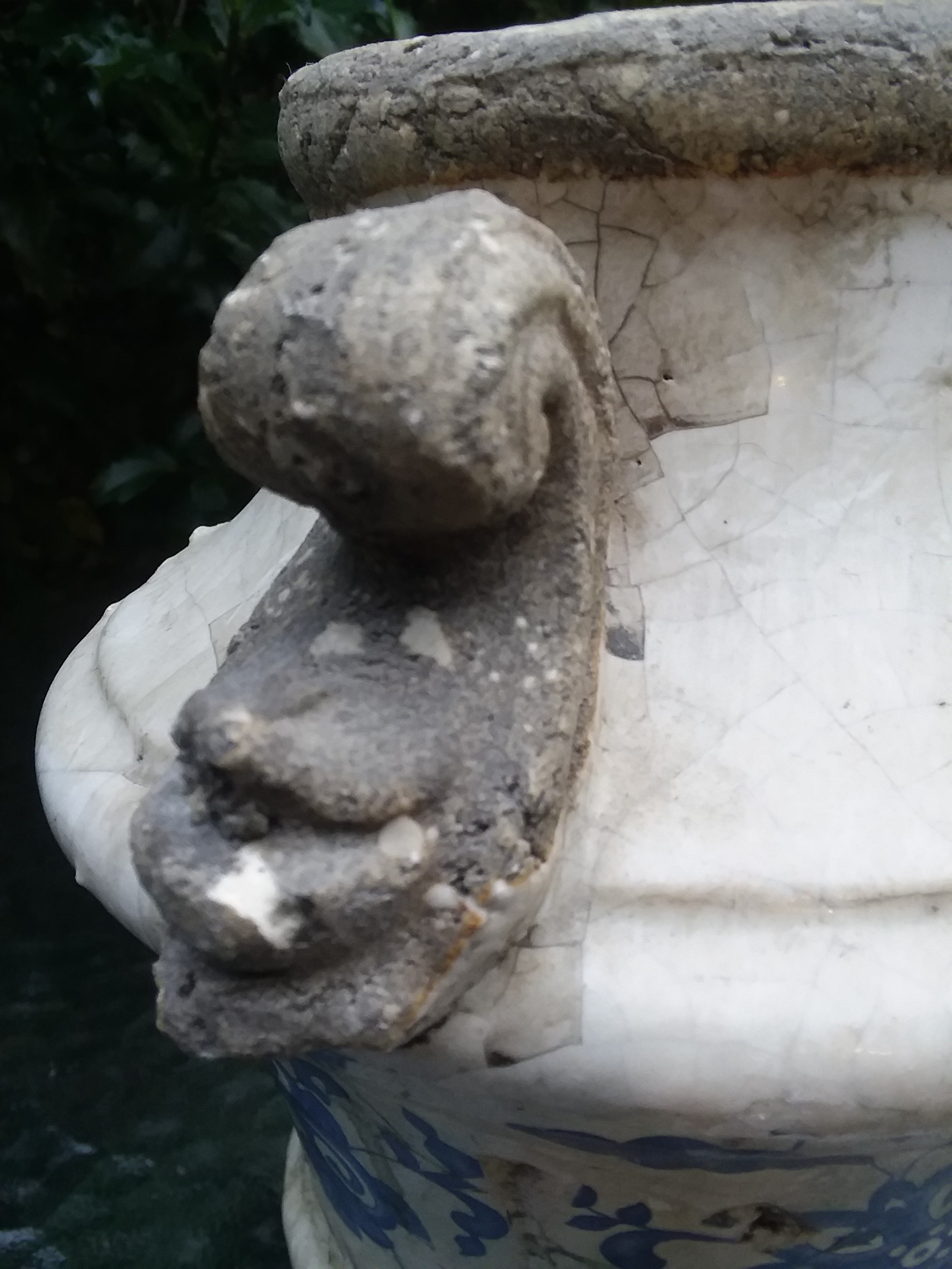 Concrete? blue glazed urn or jar replica or real?