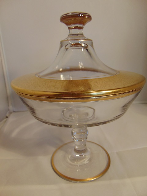 Covered Candy Dish with Gold Decoration