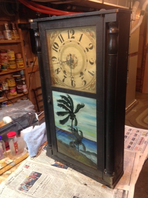 I think this will date to about the same period as your Seth Thomas. I agree someone painted the Palm trees. That wouldn't have been original to the time period. Wait for @afantiques