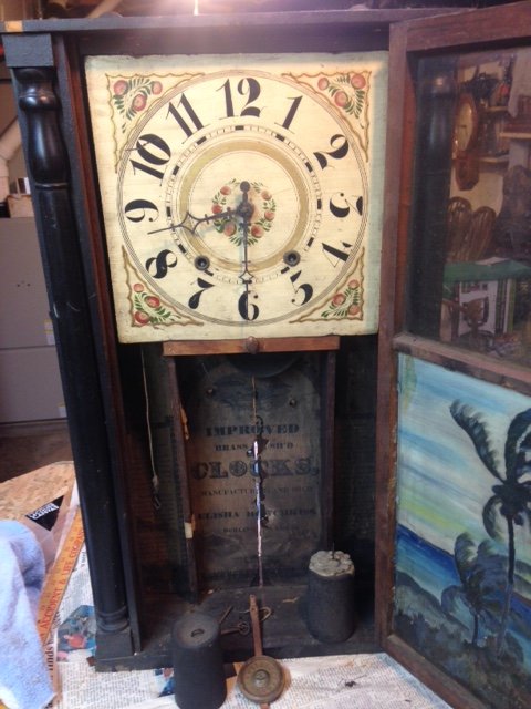 Here are some pics of an old Elisha Hutchkiss clock. Looking for any information that someone might know about this - age, story, value, etc.