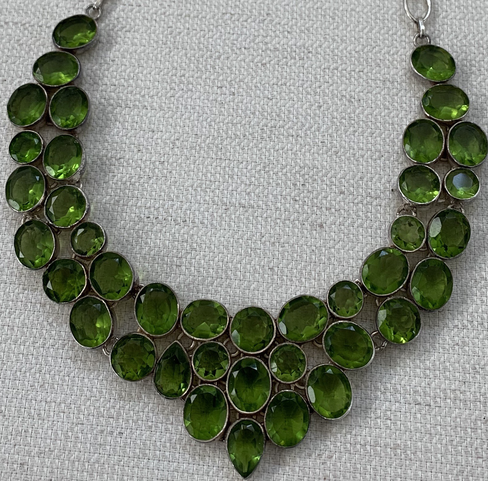 CF24AC7C-0D6B-4FA1-ADD3-DCEC9FB0E3A9.jpeg This statement bib in sterling. No idea if these are a stone or paste but eye catching just the same.