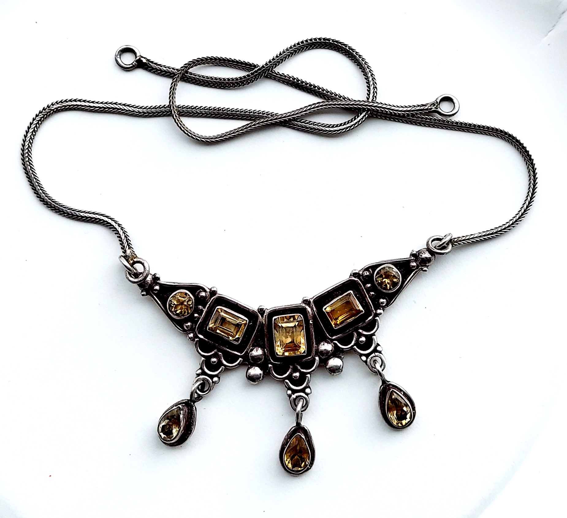 Now to the church sale story. I got up late and wasn't even going to go, but hubby is watching The Masters, so out I went. Hardly any jewelry.. .it was after 10 a.m. when I got there, and one woman was still tagging items. She had jewelry out, a few pieces, and I asked her if she had any more. She said yes, she wouldn't take it out, so I moved on. I got this sterling piece, citrine, for $15, needs a clasp. 20220410_120431.jpg