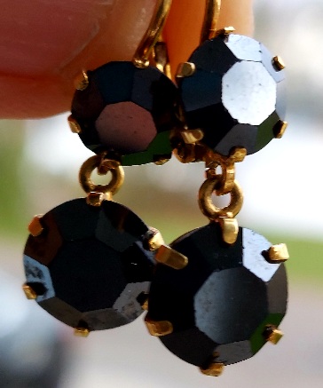 Those black earrings look exactly like a pair my mom got from her grandmother . I think she said they were from the 30s,but dont quote me on that.