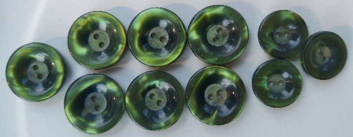 Lucite. Nothing tested positive for bakelite, but some of the buttons may be coated. The four brown ones and the horn are my favorites. I spent all day yesterday sorting and bagging. I have to seal the zip lock bags well and price. One more sort to do- huge pile of MOP buttons. I will take pics of some more of my favorites soon.