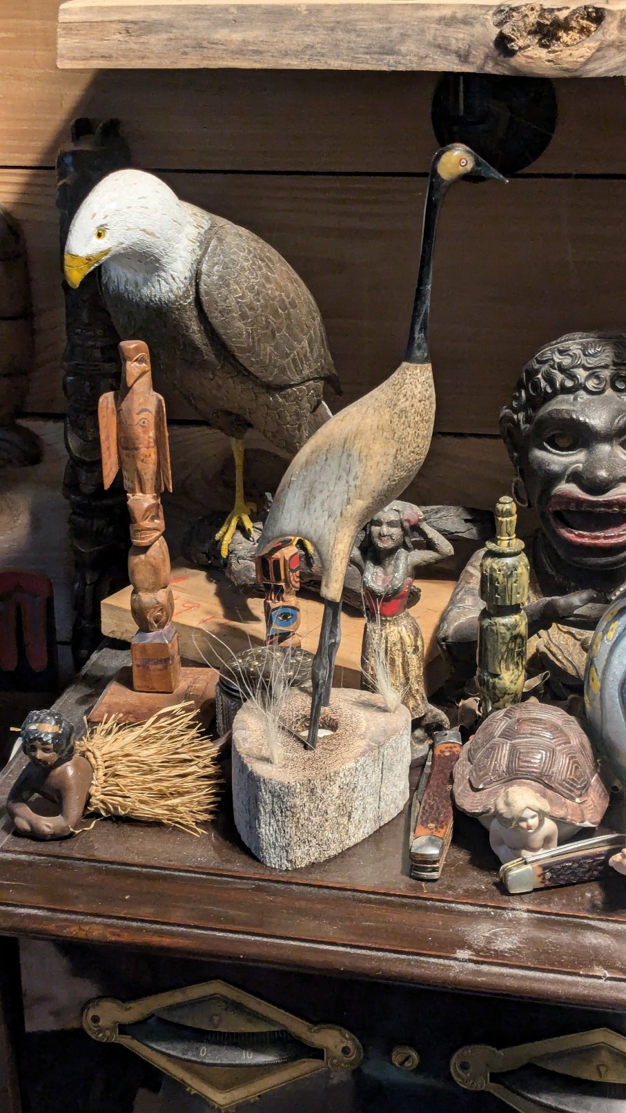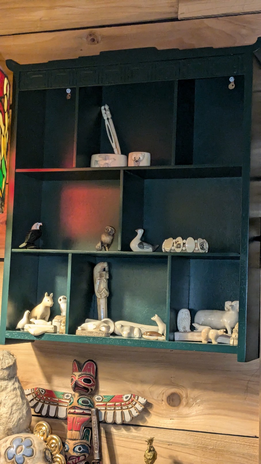 On my way picking up packing peanuts, I ran across a consignment store I didn't know was there. This is a beautiful sculpture by Chris Aningayou, a famous artist out of Nome Alaska. Made of whale bone, baleen, ivory, and hair. This will be gracing my personal collection. It is 11" tall, I love the egg in the base. Yaaahhoooo!