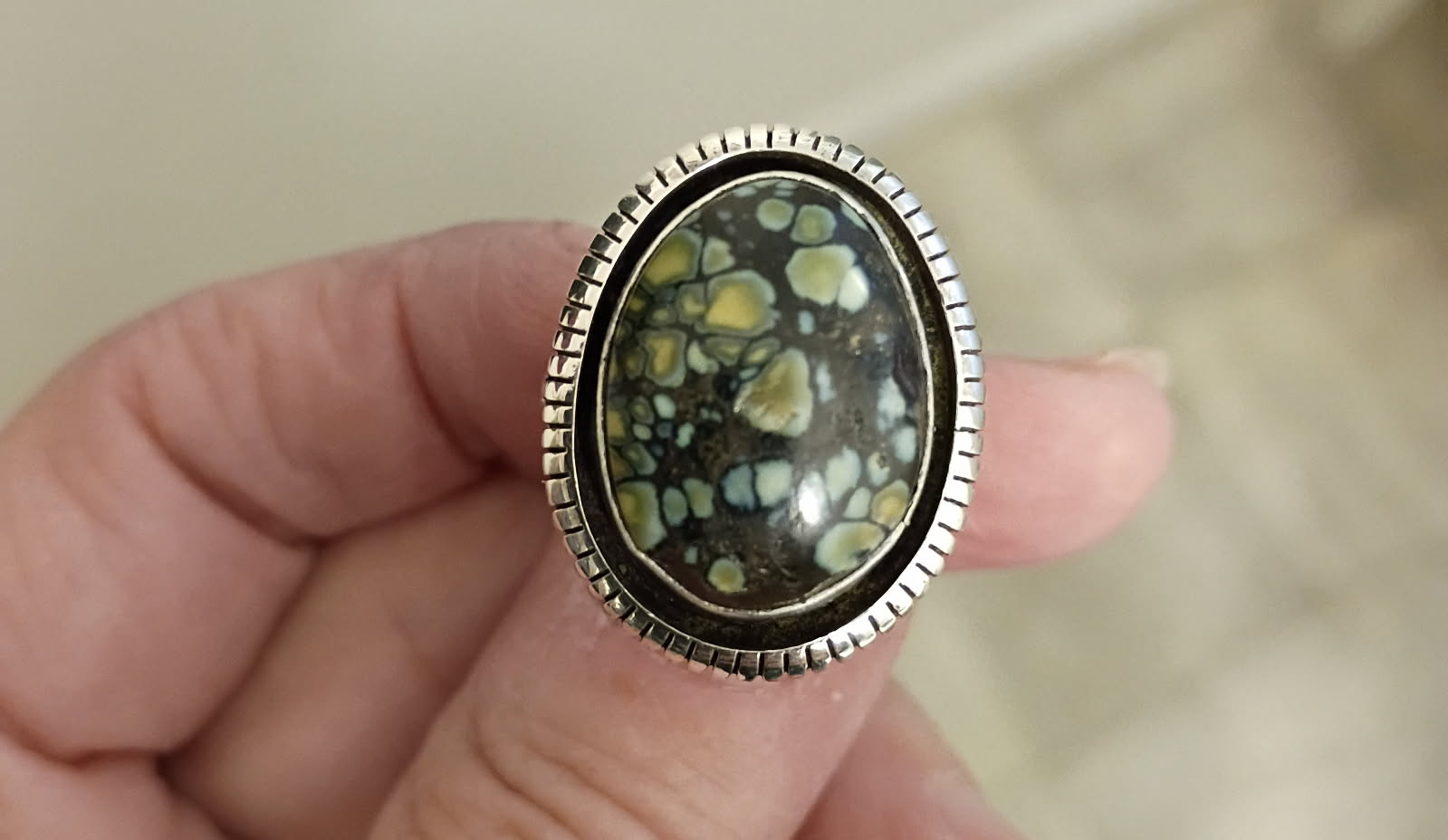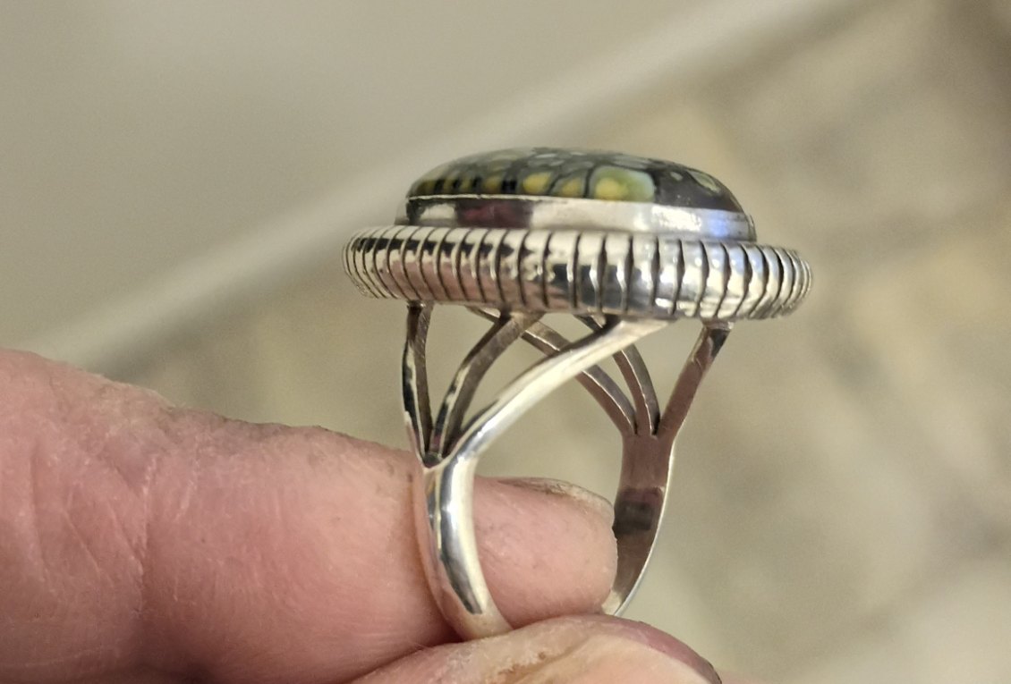 New Lander variscite Navajo made ring from eBay, misidentified as malachite.