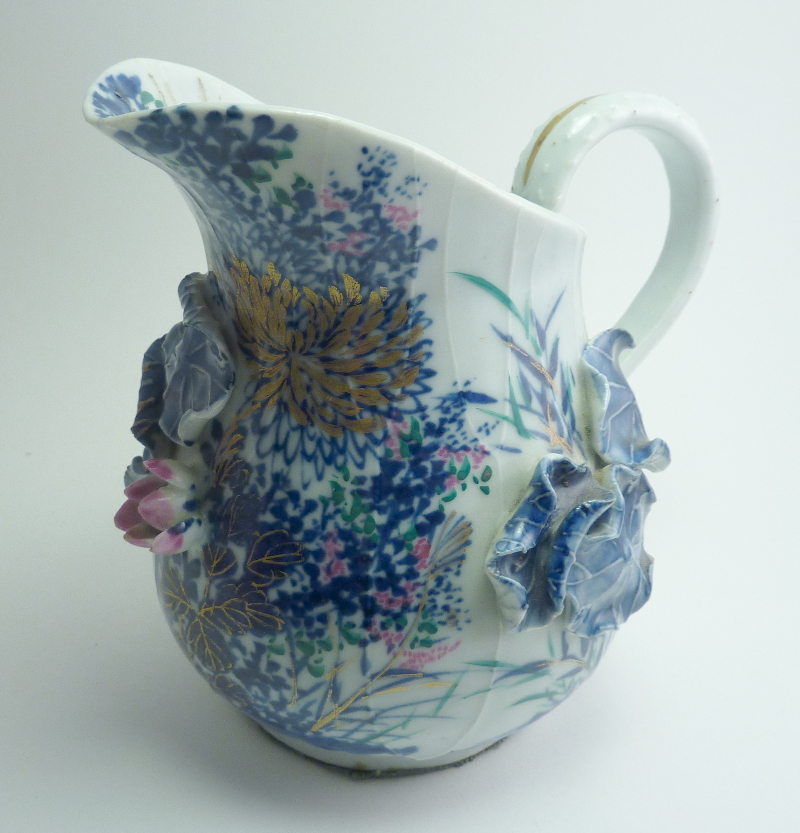 and an interesting 6" tall jug/pitcher with applied lotus flower and leaves ...