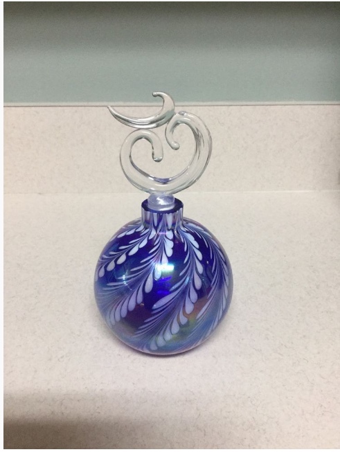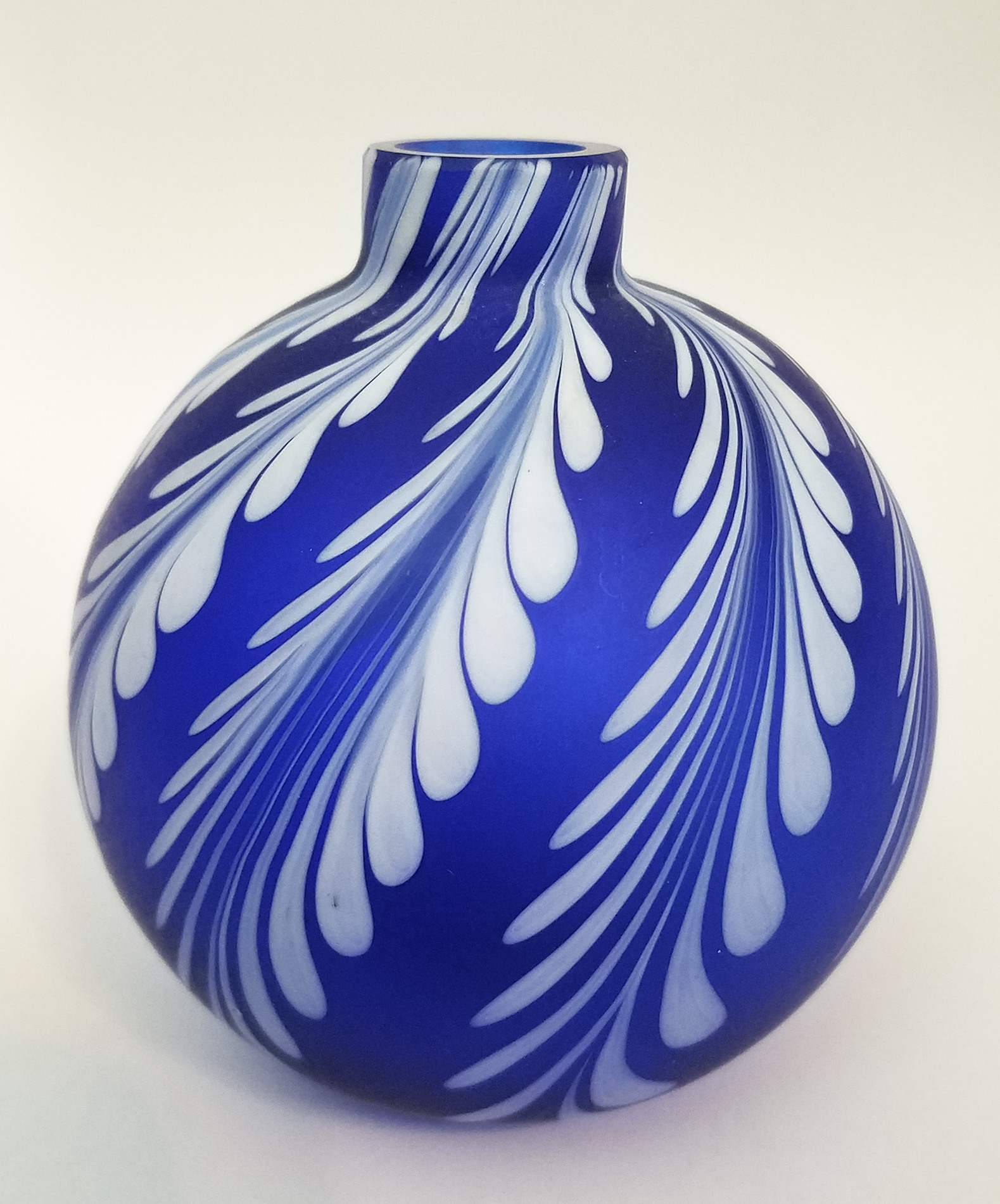 This satin cobalt blue feathered oil lamp for 2 bucks - an easy buy - I love the blue color and how the white plays on it.