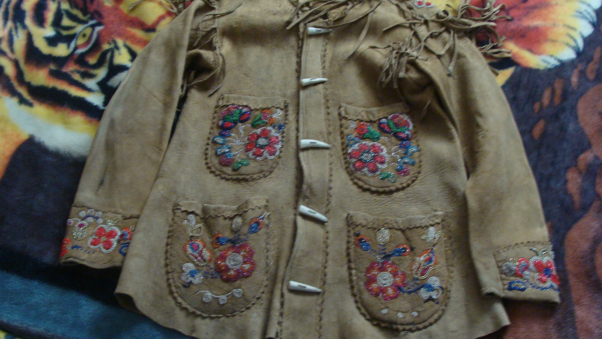 Just picked up my moose skin native american jacket. I had it in getting the zipper removed and some authentic antler buttons sewn back on. looking good . DSC09566.JPG DSC09567.JPG DSC09569.JPG