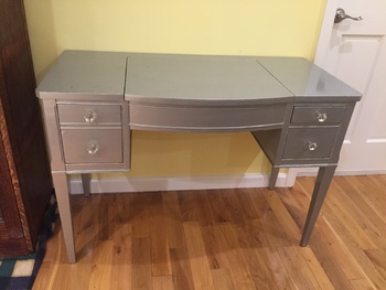 Think it was old teachers school desk it didn't have any info on it I decided to paint it and turn it into a vanity for her....