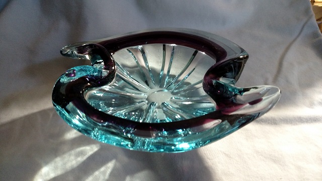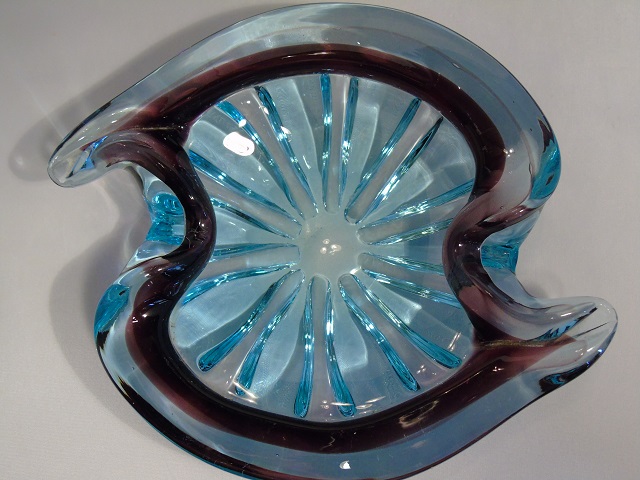 Glass Dish - Blue and Purple with Ribs - Italian?