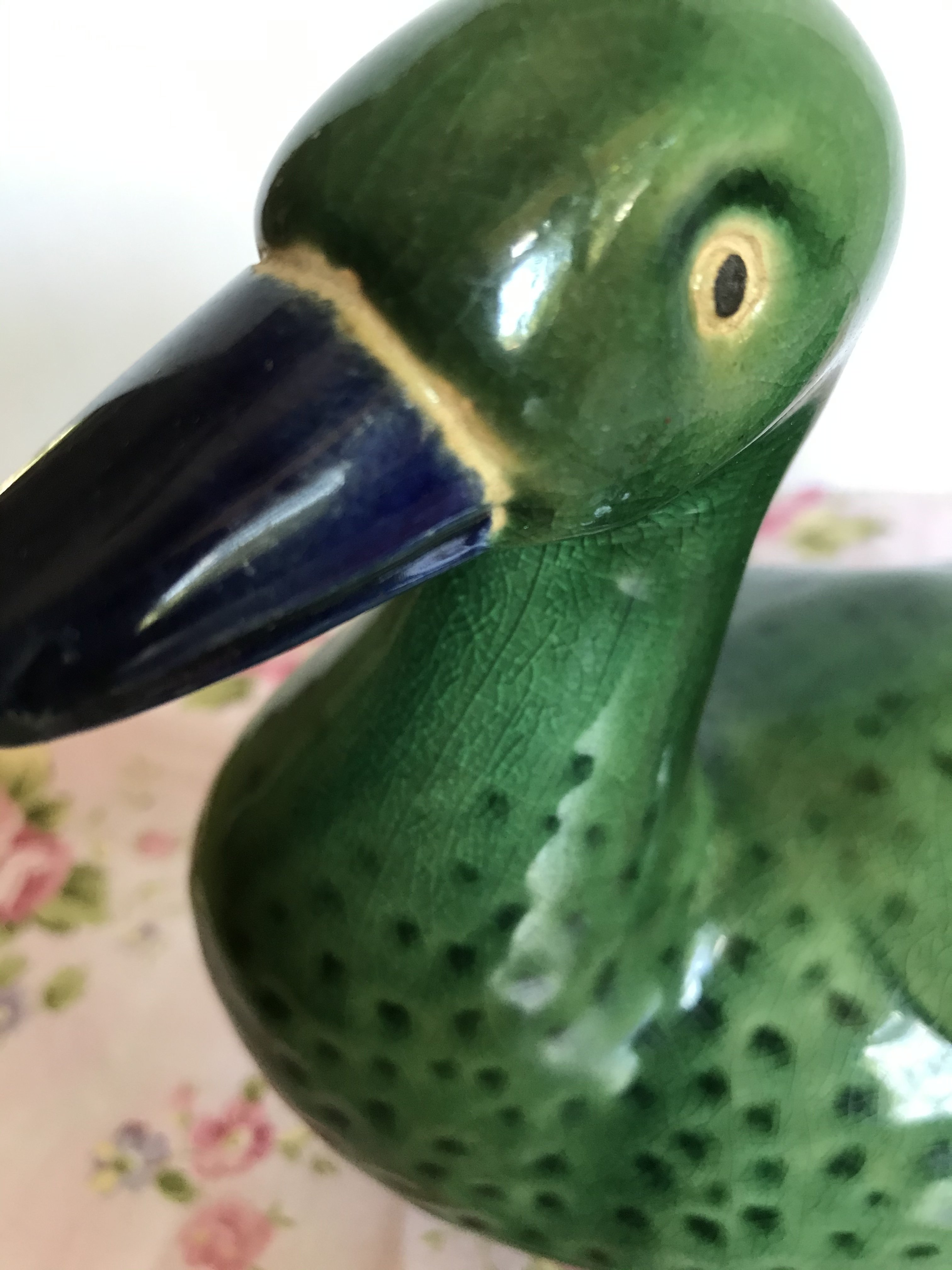 Green duck blue beak and feet