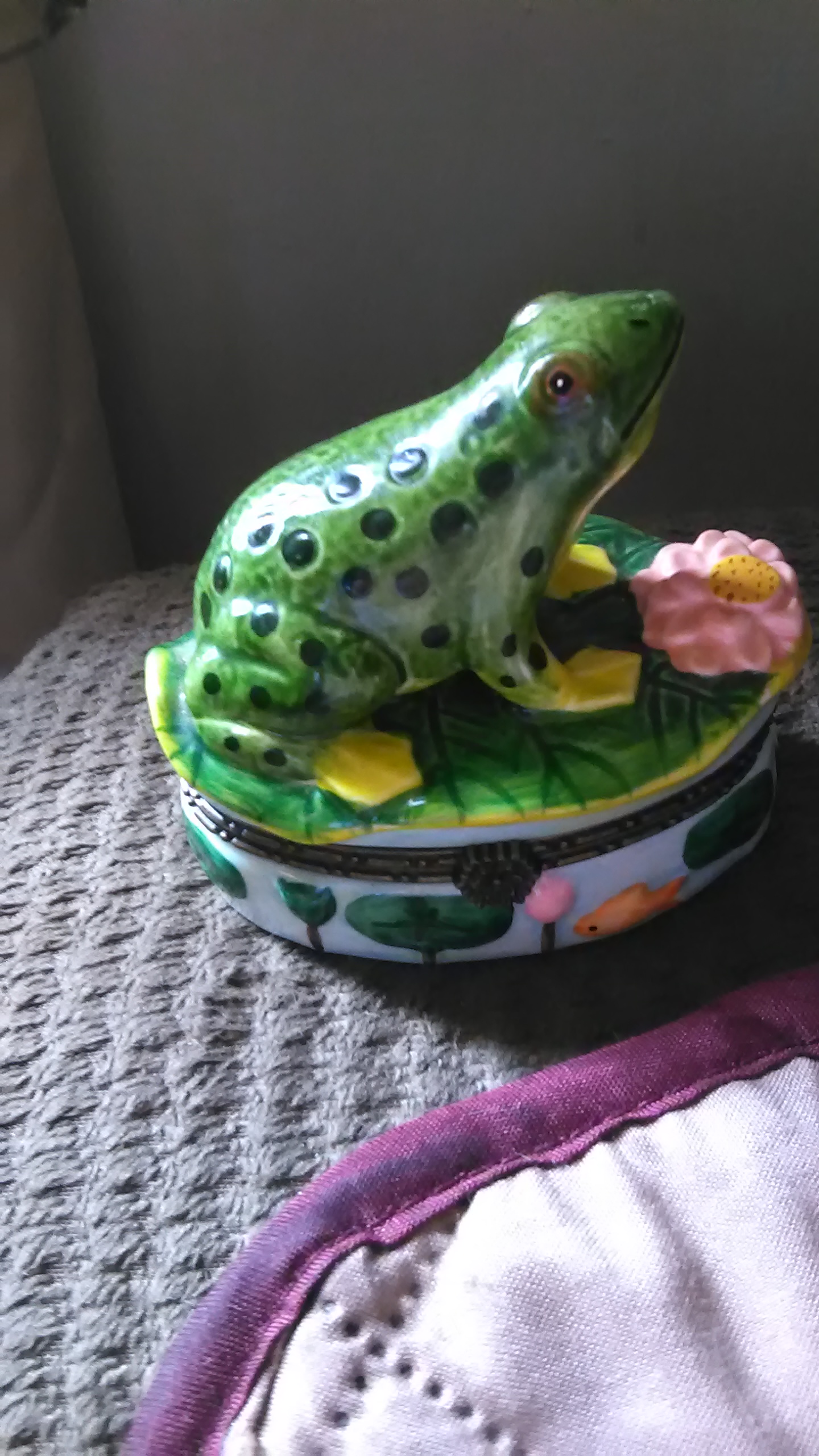 Hand painted AUTHENTIC FRENCH PORCELAIN LIMONGE FROG BOX
