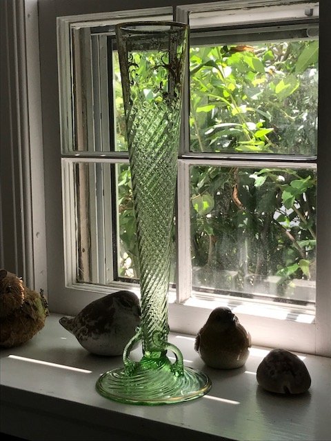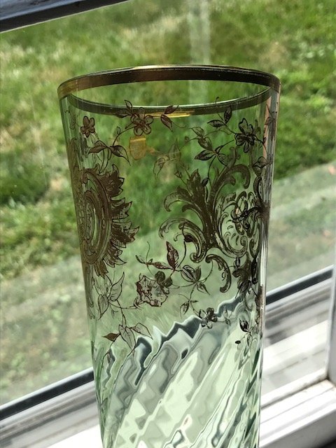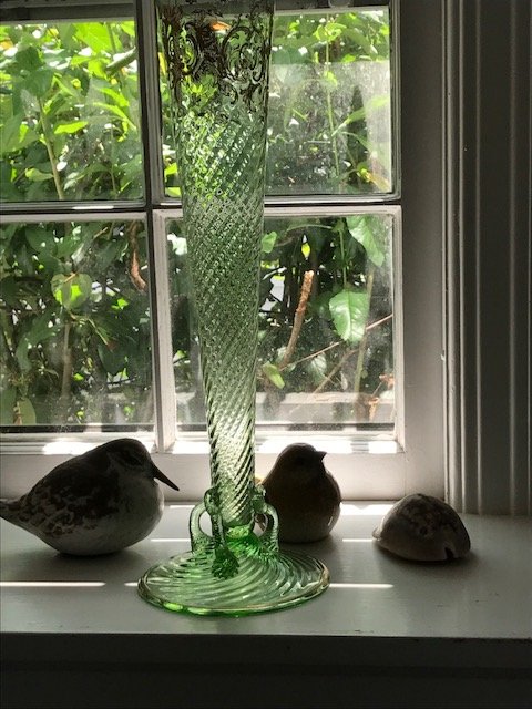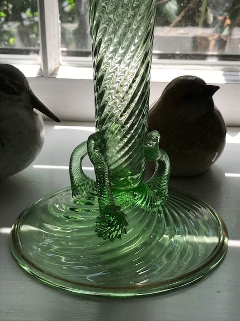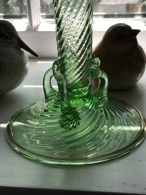 Featured Help with elegant green glass vase
