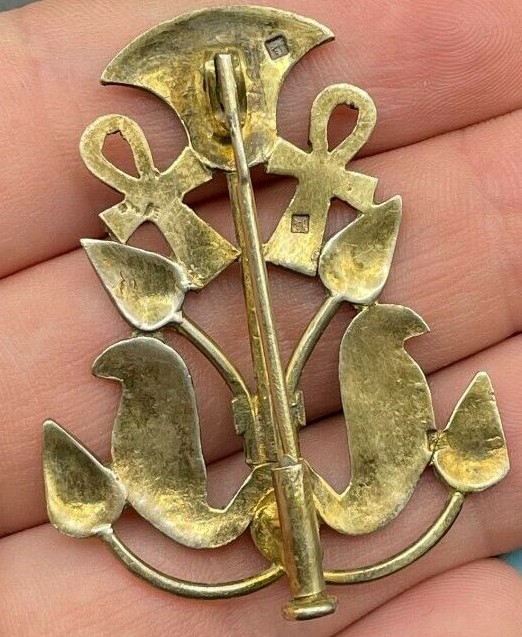 I hope someone can help me to identify the origins of this brooch please. It looks Egyptian Revival to me but Dont know what the markings are? And what it might be made off? Modern , Vintage?