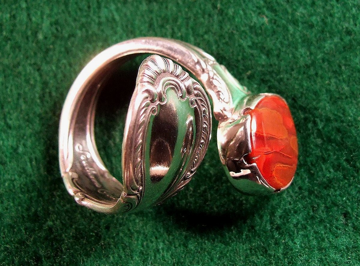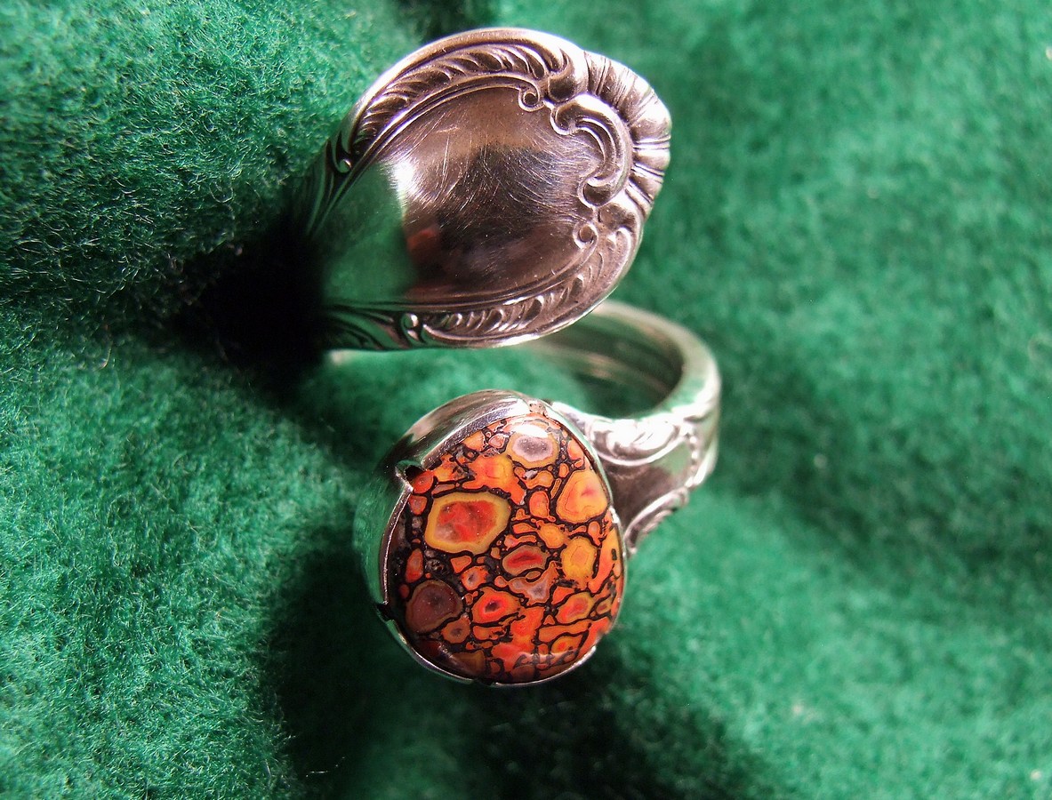 Hi Karen, I just started collecting sterling flatware a couple of months ago. I've made two spoon rings with cabs and am in the process of making bracelets and pendants. Most of the jewelry I do is inlay with stones unique to my area, I grew up collecting local rocks and started creating unique jewelry with them about forty years ago. Here is a photo of the spoon rings with gem dinosaur bone cabs.