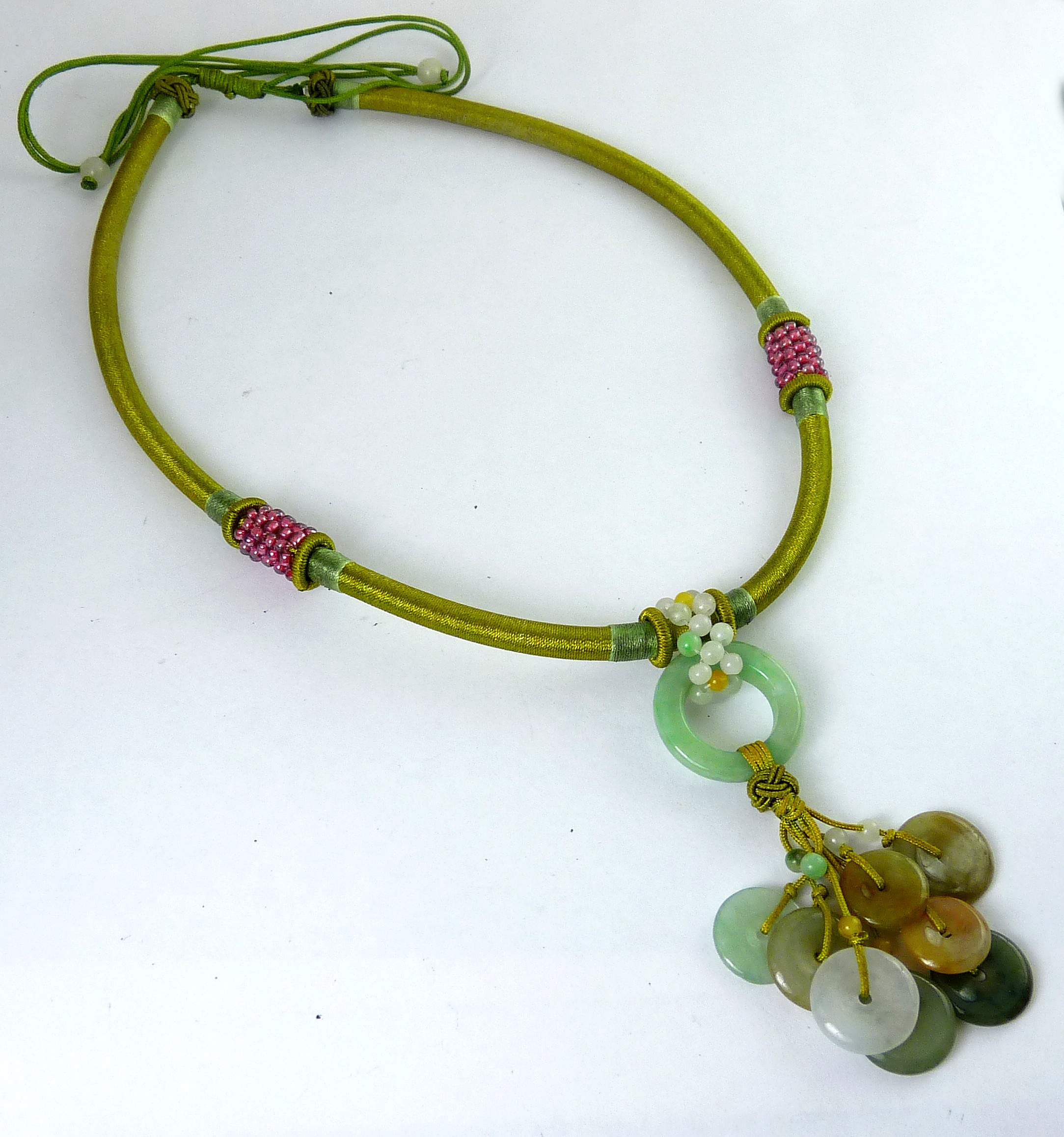 Neprhite Rings & Cord Wrapped Tube Necklace ID