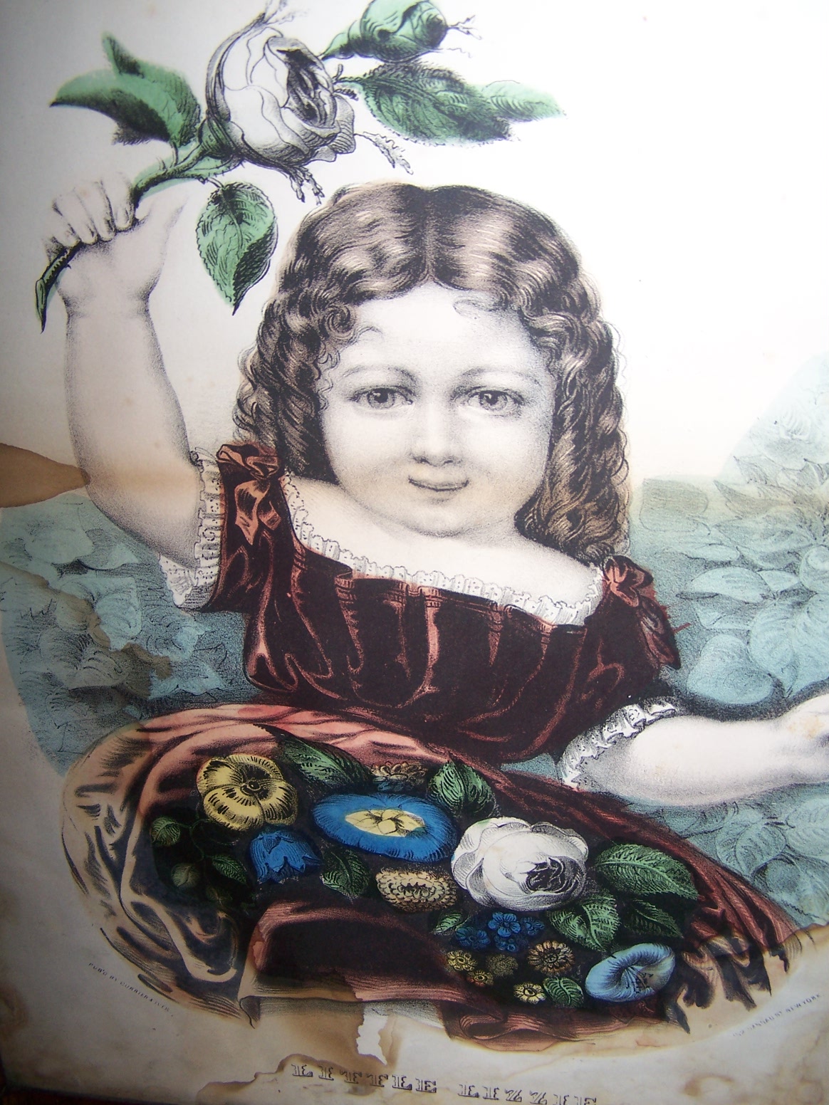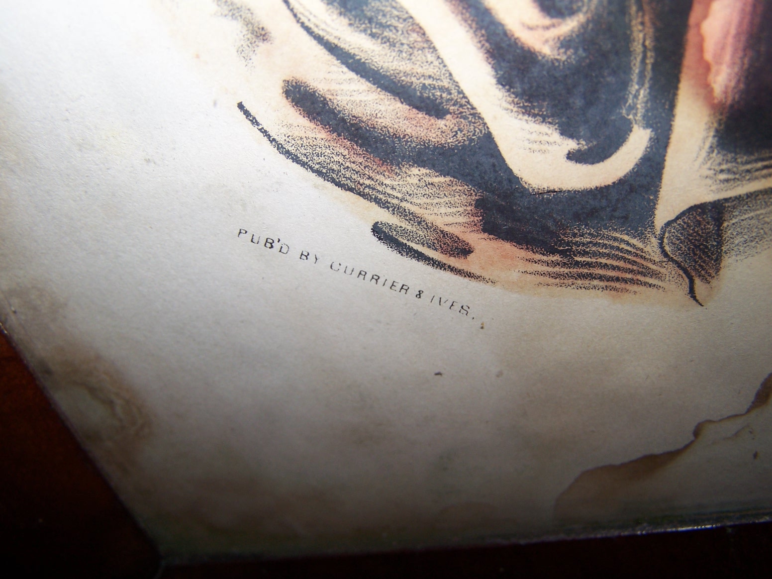 Featured Original Currier & Ives badly water stained.