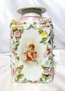 painted cherub vanity jar