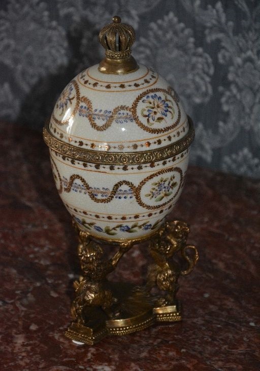 Porcelain Egg with 3 bronze lions