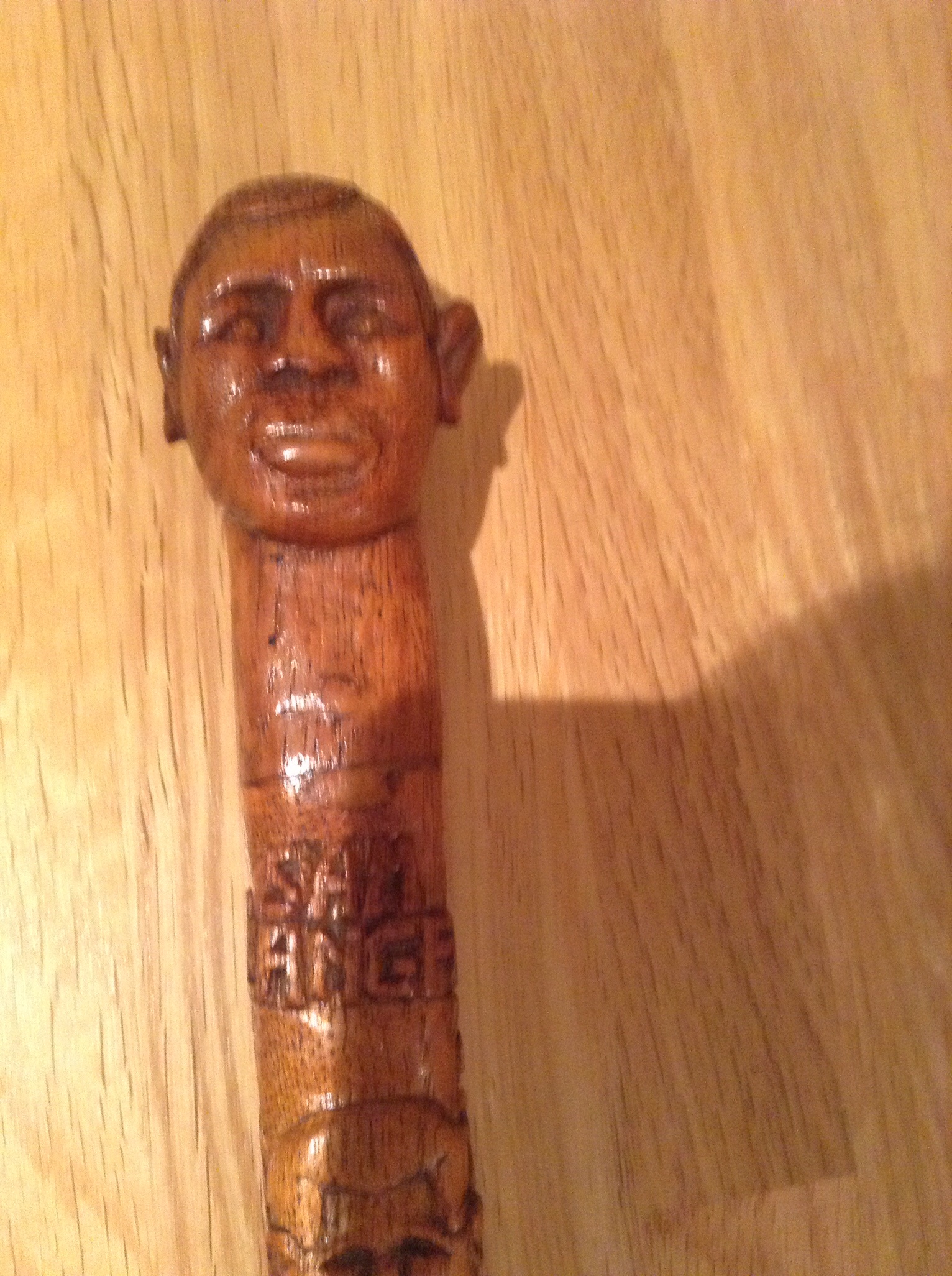 I saw this over on ebay forum but don't know too much about such things. I do think it has the potential to be a good item. It appears to be oak and, as such, I would think it is American in origin. It doesn't seem to be as old or as fine as some of the most sought after canes but it certainly is unique. Without a carver's name, it will probably be difficult to know a whole lot more.