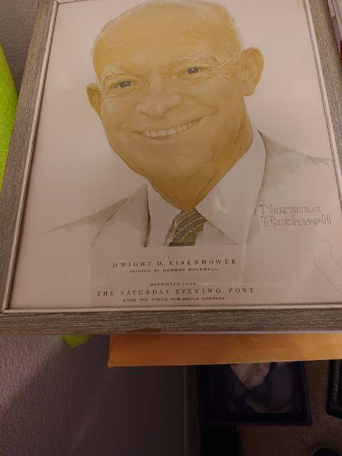 This Norman Rockwell print of Dwight D. Eisenhower is stated on the bottom to be "a reprint from the Saturday Evening Post 1956 by the Curtis Publishing Co.
