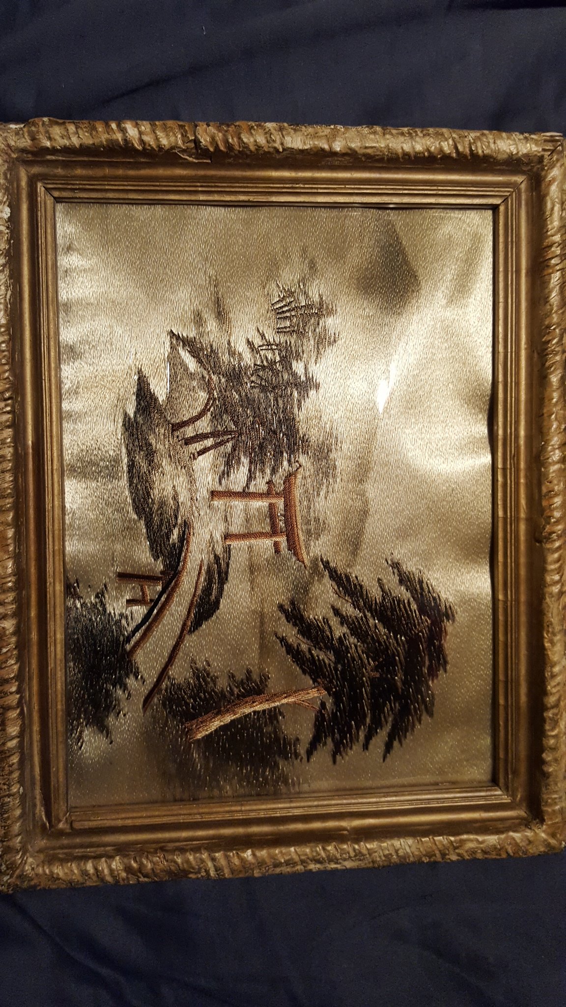 I had something similar. I believe it's an embroidered painting on silk from Japan.
