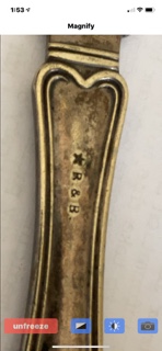 | Silver | Last one tonight. Antique children's pair of 900 silver fork and knife. Need help reading monogram. | Today at 12:31 AM |