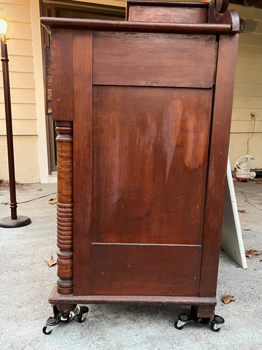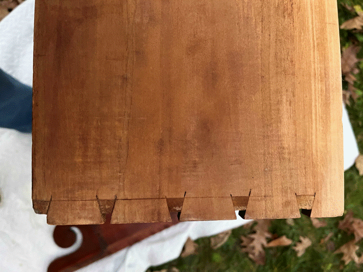 I've had a lot of time to ruminate on this piece. My speculation? Some guy who built furniture went to a mill that used a bandsaw and got his lumber there. He (or maybe he and his family members) made pieces he wanted to make, the way he wanted to do it, mostly by hand. Hence all the odd bits and handwork, even when everywhere around him the work was becoming more mechanized. He was someone who didn't care for giving up his hand plane and cutting dovetails himself. If that was the case, I bet he made his family bananas. Because guys like that live today. I would still like to find him. I plan to take care of his work.