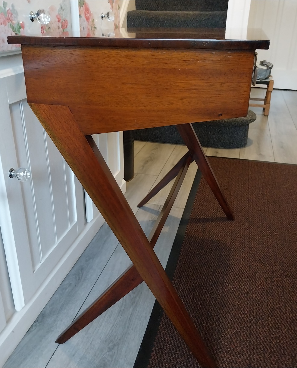 First photo shows the black stamp on the inside of the desk there's one on the other side.Second photo shows the drawer with that beautiful wood used for the whole piece.Seen lots of these mid century pieces without the same wood constructing the drawers looks like cheaper pine. 20251022_123908.jpg 20251022_124034.jpg