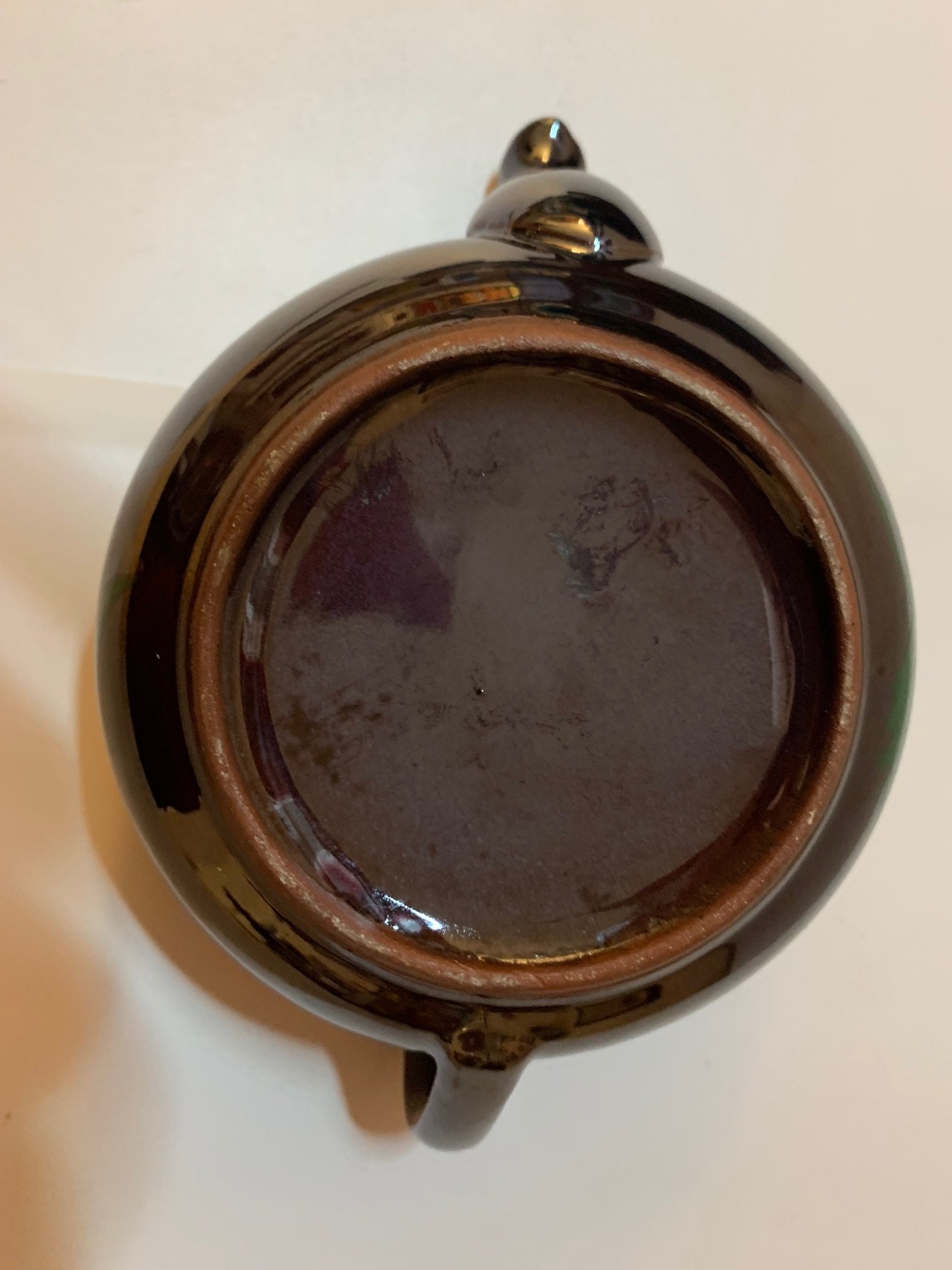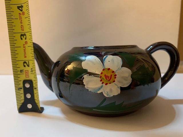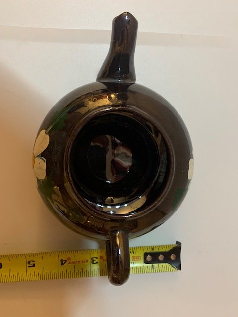 It looks newer than typical "made in Japan" red clay ware glazed brown and handpainted, not sure without seeing the bottom.