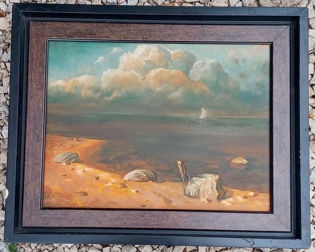 This small oil on canvas seascape is unsigned and I believe it may be factory art. Still thought it has a nice look. Bought for $4.00.