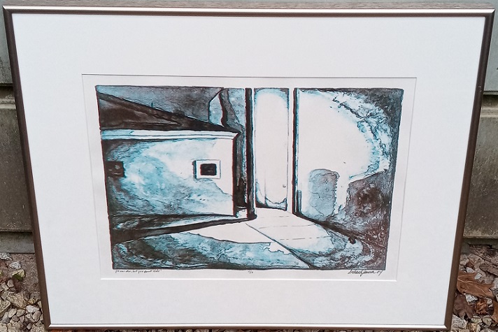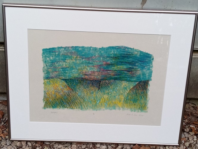This is a medium sized signed lithograph by Bloomington-Normal, IL artist Meda Rives (Smith). Bought for $4.00.