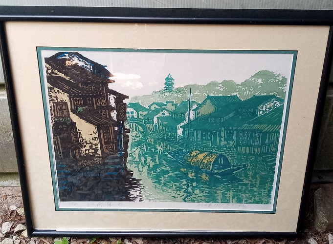 This is a fairly large contemporary Asian block print. Google lens suggest it is Suzhou School (China) and could be the work of Zhou Xinghua. There appears to be several artists working in similar style. Can anyone confirm or deny the attribution? Also, some sellers suggest these are lithographs or etchings. Looks like more research is necessary. Bought for $4.00.