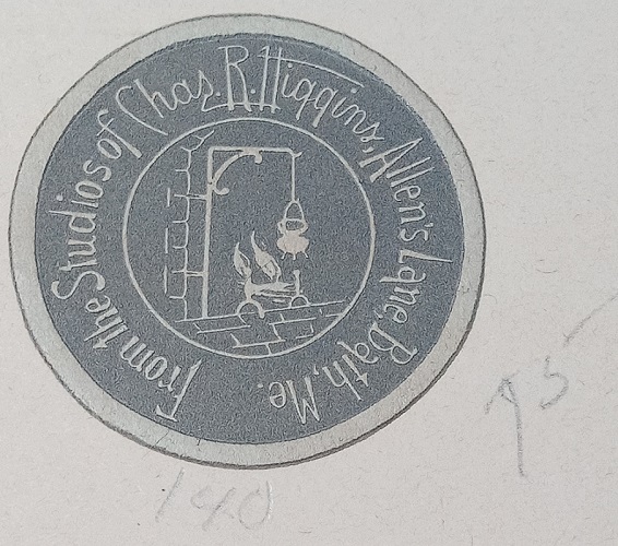 This hand tinted photograph is by Maine photographer, Charles Higgins. I particularly like the sticker on back. Bought for $1.00.